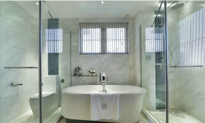 新中式风格225平方米别墅卫生间玻璃隔断图片
