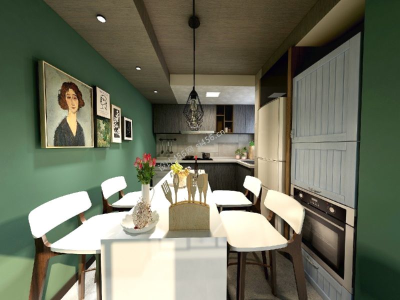 98平米现代简约风格三居室餐厅厨房装修效果图