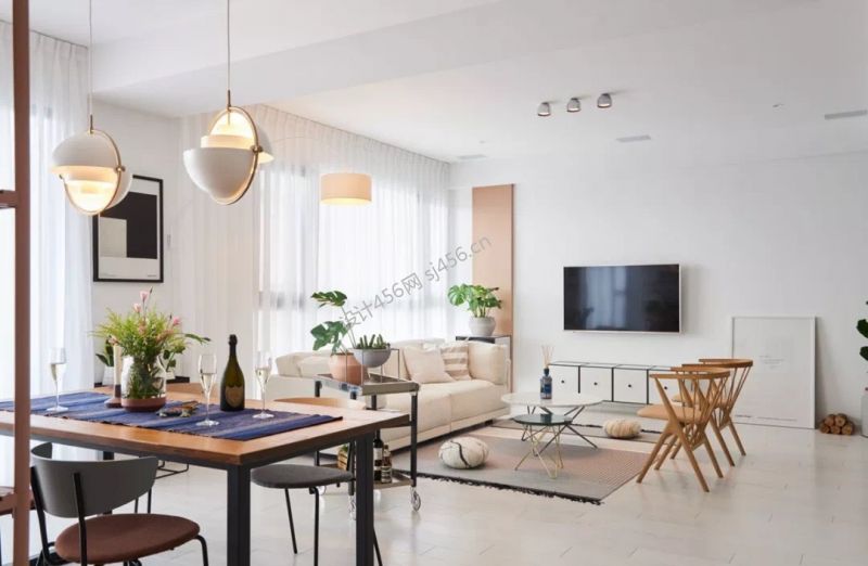 北欧风格100平方米三居室客餐厅一体装修图片