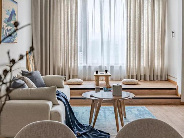 日式风格两居的户型,巧妙的运用隔断,不仅会让空间显得很宽敞,同时也给人一种很简约高雅的小格调。本案例就是日式二居,客厅的装修很有创意感,带有飘窗进行了简单设计,打造的是双层台阶日式榻榻米。