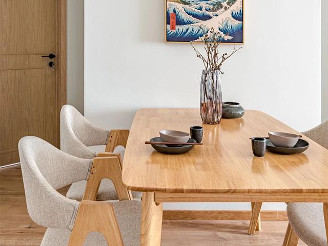餐厅的面积小,装修一切从简了,白色的墙壁搭配日式风壁画,进行墙壁的美化装饰,多了一些日式的艺术气息。原木色的实木餐桌椅,相互搭配衬托,充满了日式和风的生活气息。虽然餐厅布置很简单,但是巧妙的进行装饰,却多了一些简约中的淡雅小格调。