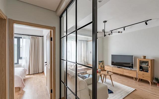从入户玄关的空间可以清楚的看出,整个户型的格局很不错,运用的是黑色边框的玻璃门做隔断,打造了独立的空间,同时也不显得太厚重,空间也格外的通透亮堂。原木色的家具与实木地板进行衬托,很具有日式的淡雅格调。这样纯净的日式风格,怎么能让人不喜欢呢,小户型很适合这样装修,简简单单又不过时。