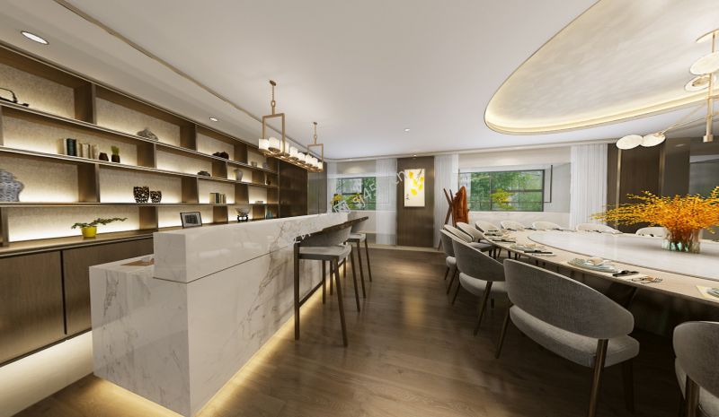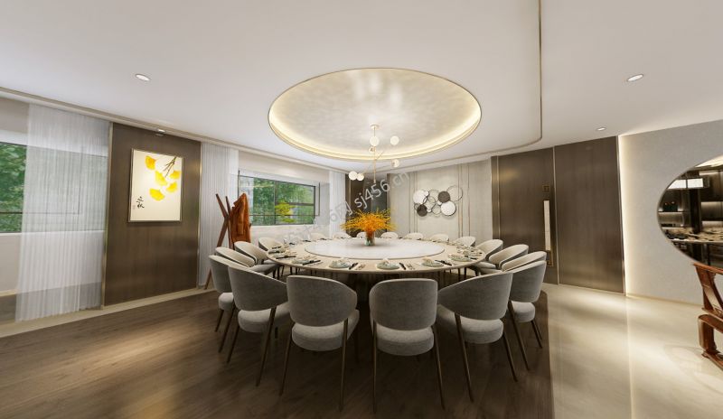 休闲会所新中式风格500平米餐厅餐桌装修效果图