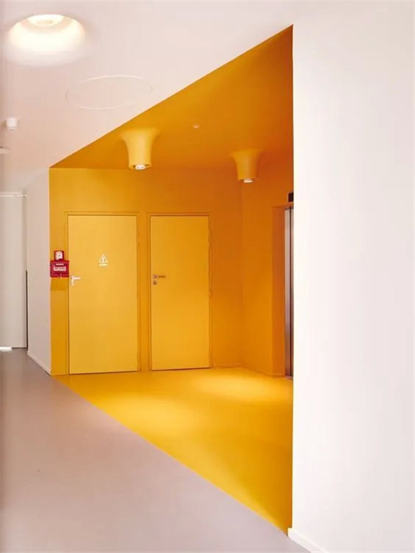 ③ 用橙色来加强门的内凹结构,把内凹的结构用色彩再次加强,做成了一个空间的视觉亮点。