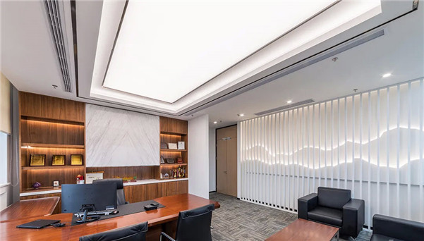 1、重点区域的明暗划分中科新生命的董事长室就是用了明暗对比的手法来突出空间的视觉重点,划分空间的区域。