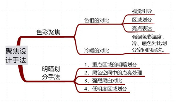 本文主要讲的是利用聚焦设计手法,从构成空间界面的视觉元素入手,打造空间视觉中心和主次分明的空间视觉效果。咱们用一张导图来总结一下: