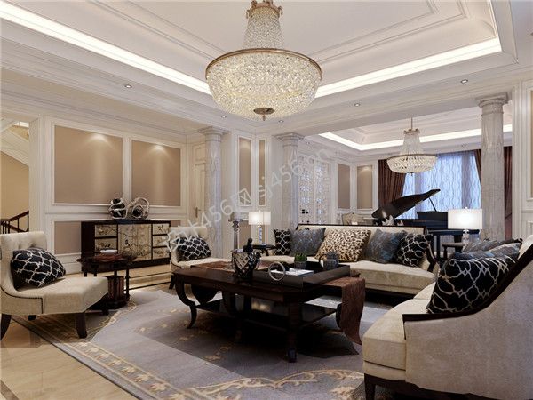 600平别墅简欧风格客厅装修效果图