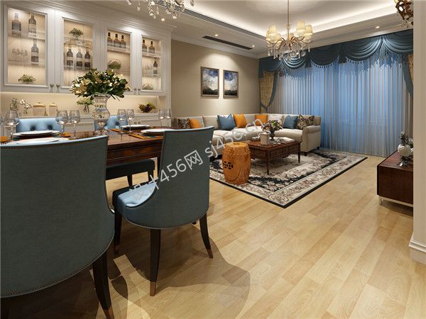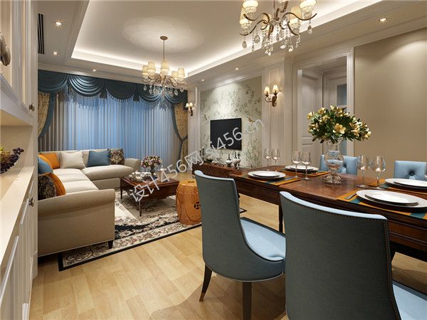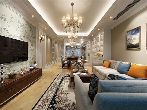 130平米三居室美式风格客厅装修设计效果图