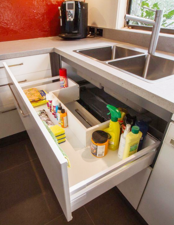不说这个侧柜能带来多少的收纳,但增加了之后,是实打实的带来便利性。特别是像备用抹布、刷子,小苏打等等这些,就可以得到很好的收纳。不用堆放在台面上,显得更加的整洁,而且当需要使用到的时候,随手一拉,也省的到处找,浪费时间。