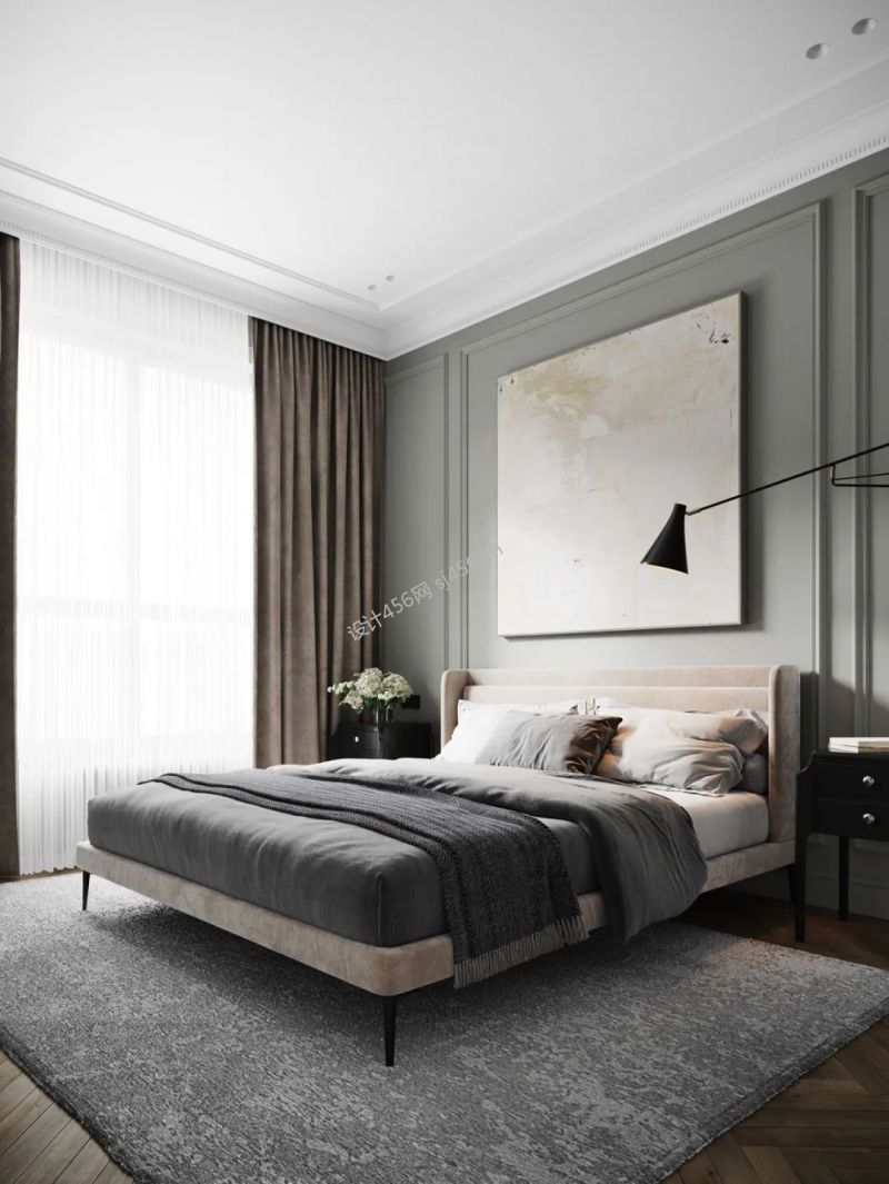 95平米三居室现代温馨风格卧室背景墙装修案例