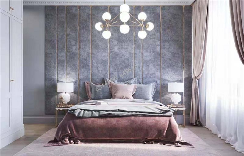 120平米3室2厅轻奢风格主卧室背景墙装修实景图