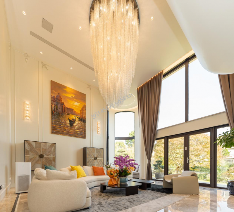 设计理念: 设计重点: 1.打造豪华吊灯,满足照明+颜值 2.设计落地窗,借景提高视野开阔度 3.遵循色彩搭配原则,增减空间精致感 4.优化每一寸空间,功能齐全 设计重点: 1.打造豪华吊灯,满足照明+颜值 2.设计落地窗,借景提高视野开阔度 3.遵循色彩搭配原则,增减空间精致感 4.优化每一寸空间,功能齐全
