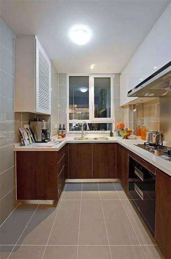 空间狭小、采光不足的厨房,适合用明度和纯度较高、反光性较强的色彩,因为这类色彩具有空间扩张感,在视觉上可以弥补空间小和采光不足的缺陷。