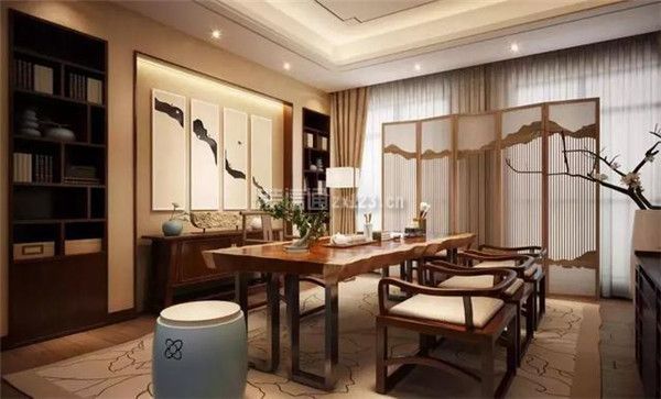如书柜里的小工艺品,墙上的装饰画(在购买装饰画时,要注意其在色彩上是为点缀用,在形式上要与整体布局协调),这样可打破略显单调的环境。