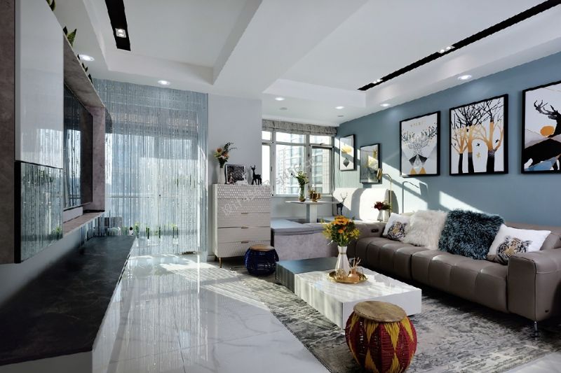110㎡三居室现代简约客厅装修效果图