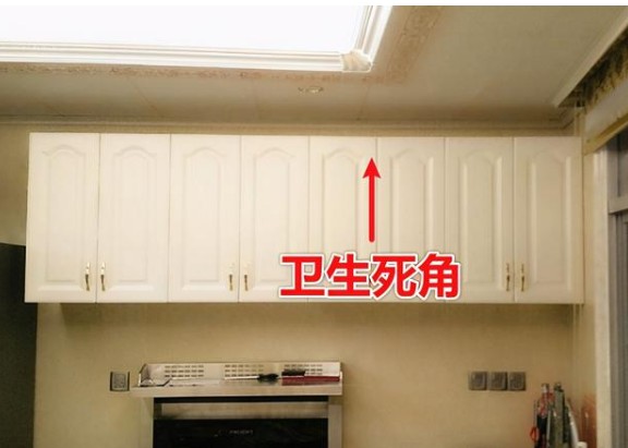 吊柜要做到顶部,这样灰尘油渍就不会飘落在厨房吊柜上面,变成一个又脏又没办法打扫的卫生死角。