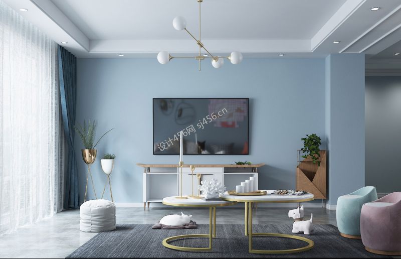 北欧风格150平三居室客厅墙面颜色装修设计图