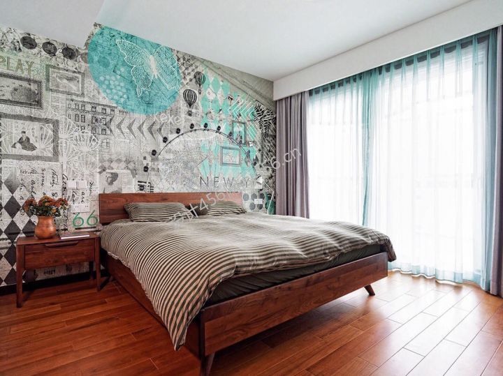 北欧风格118平三居室卧室背景墙装修设计图片