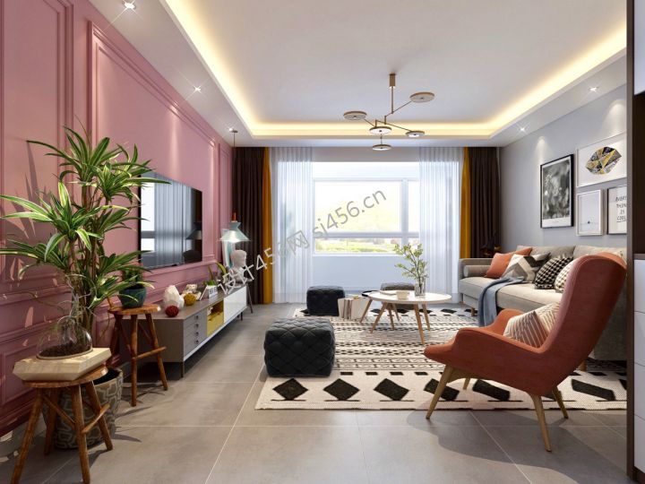 北欧风格118平三居室客厅背景墙装修设计图片