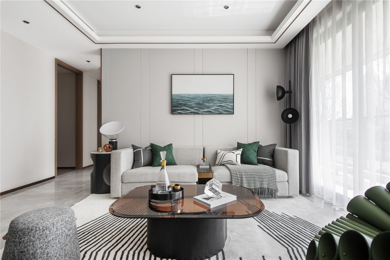 客厅,作为交流中心,亦是家人欢度时光的主要空间,设计师选用了代表意式极简,时髦具有鉴赏力的沙发作为其中的舒适依靠,配以雅致的绿色、以三宅一生的褶皱作为设计主题,张弛有度不失优雅。
