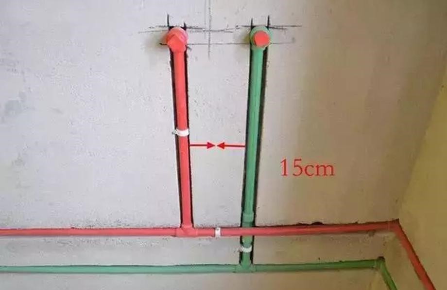 冷热水管安装上要保持垂直,避免影响洁具安装,且冷热水管间距至少15cm,如果间距不够,可能导致热冷水互相影响,影响使用舒适感。