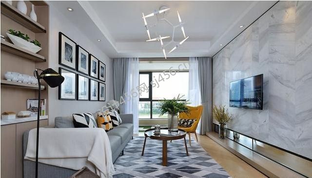 现代简约风格115平三居室客厅挂画装修设计效果图