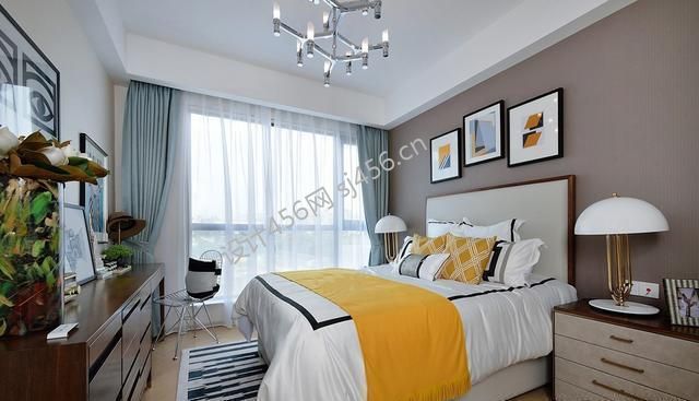 现代简约风格115平三居室卧室背景墙颜色装修效果图