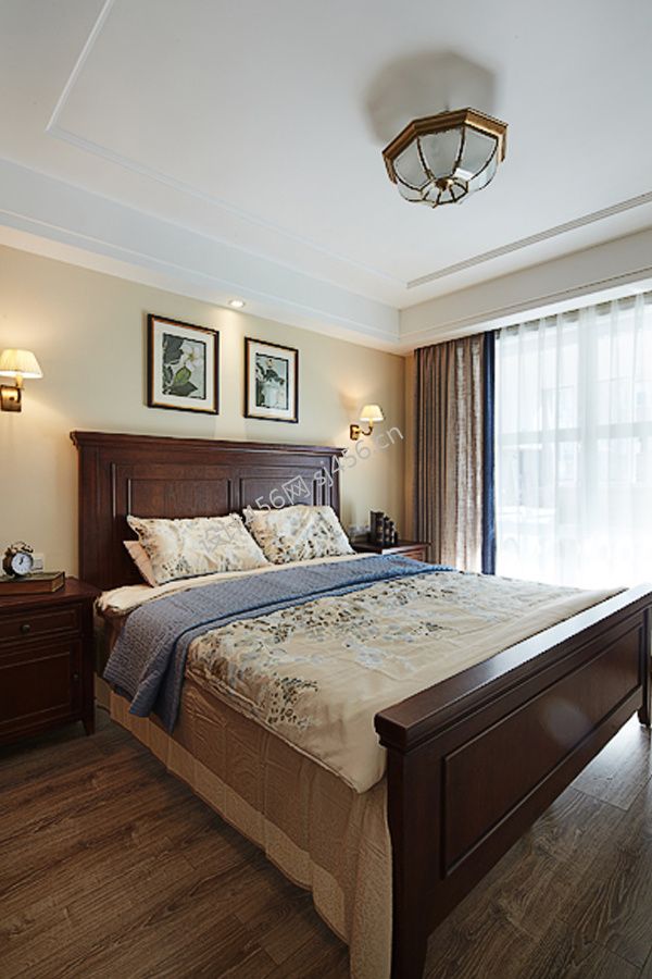 美式风格四居室主卧实木床设计装修图片