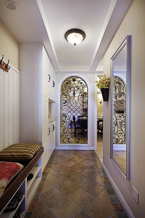 美式风格房屋进门玄关镜子装修效果图