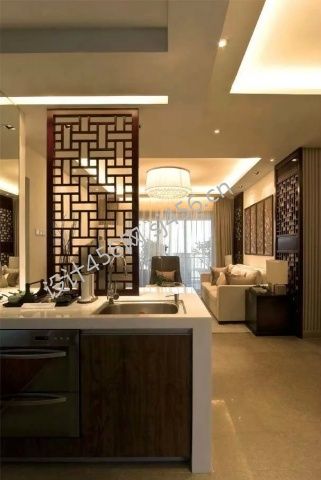 新中式风格180平米复式楼厨房橱柜装饰图片