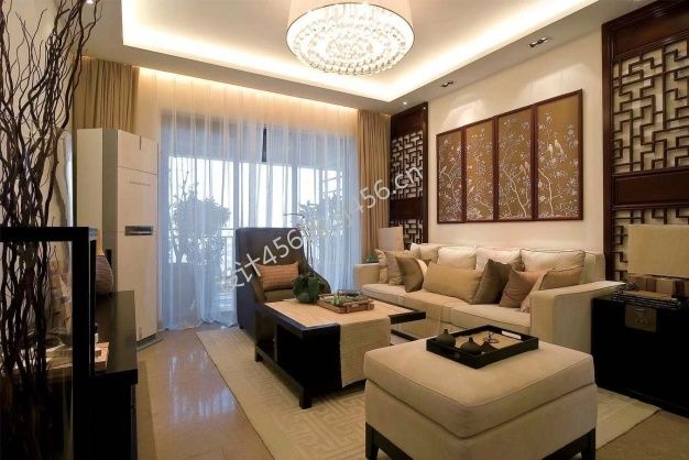 新中式风格180平米复式楼客厅窗帘搭配装饰图片