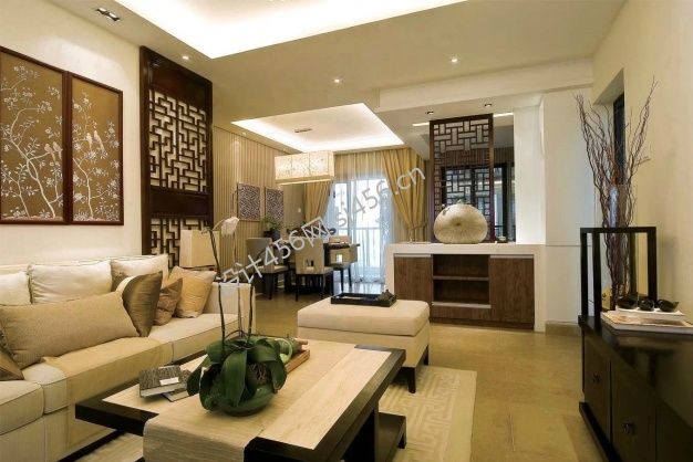 详情新中式风格180平米复式楼客厅沙发墙装饰图片