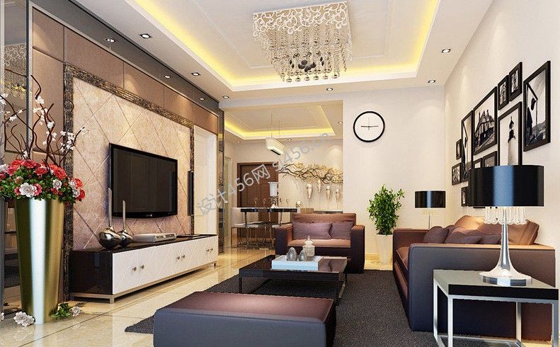 92平米现代风格三居客厅电视背景墙装潢效果图