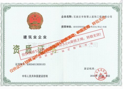 石家庄智慧人装饰公司成立于2001年,是一家集室内外装饰设计、施工、监理、材料一体的石家庄装修公司,专业从事室内外装饰装修工程、装修设计。公司经过十年的发展,已成为有着创新的设计、合理的报价及独立的专业化施工队伍,确保了施工质量。 公司始终抓住工程质量与服务满意度两个中心,确立“高起点、严要求、专业化、创精品”的经营思路,以“优质服务、诚信经营”为工作指标,内部规范管理,树立企业形象,不断提高企业素质,增强市场竞争能力。 公司在与客户进行工程合作之时,将为客户提供详尽的工程咨询、合理的设计、优良的施工。在创造经济效益之同时,更加追求良好的企业信誉及社会效益。智慧人装饰追求成效、讲究诚信,注重公司品牌形象宣传。企业有良好的信誉、精湛的工艺、完善的服务和雄厚的实力。智慧人装饰正在稳步迅速的发展壮大。