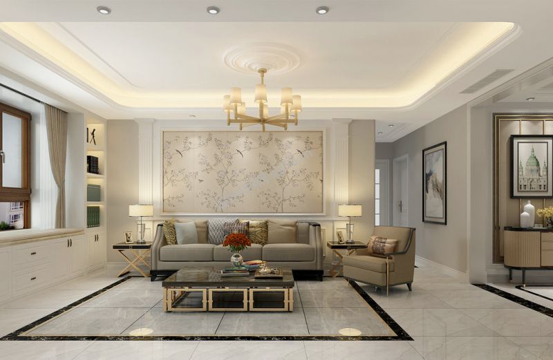 详情混搭风格140平三居室客厅电视墙装修效果图