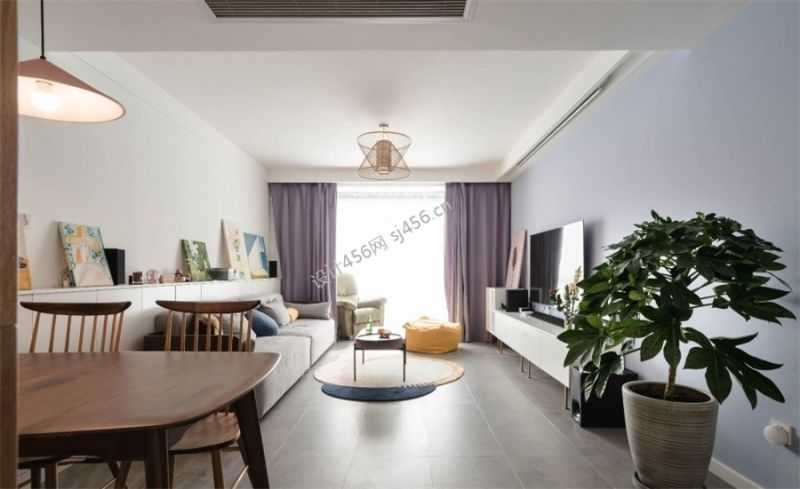 现代混搭风格98平三居客厅窗帘效果图