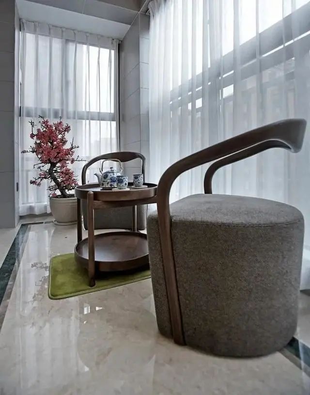 当然,也可以将阳台打造成一间茶室,亲友来家做客时,坐在阳台上品品茶、聊聊天、望望窗外,都是很轻松舒适的!