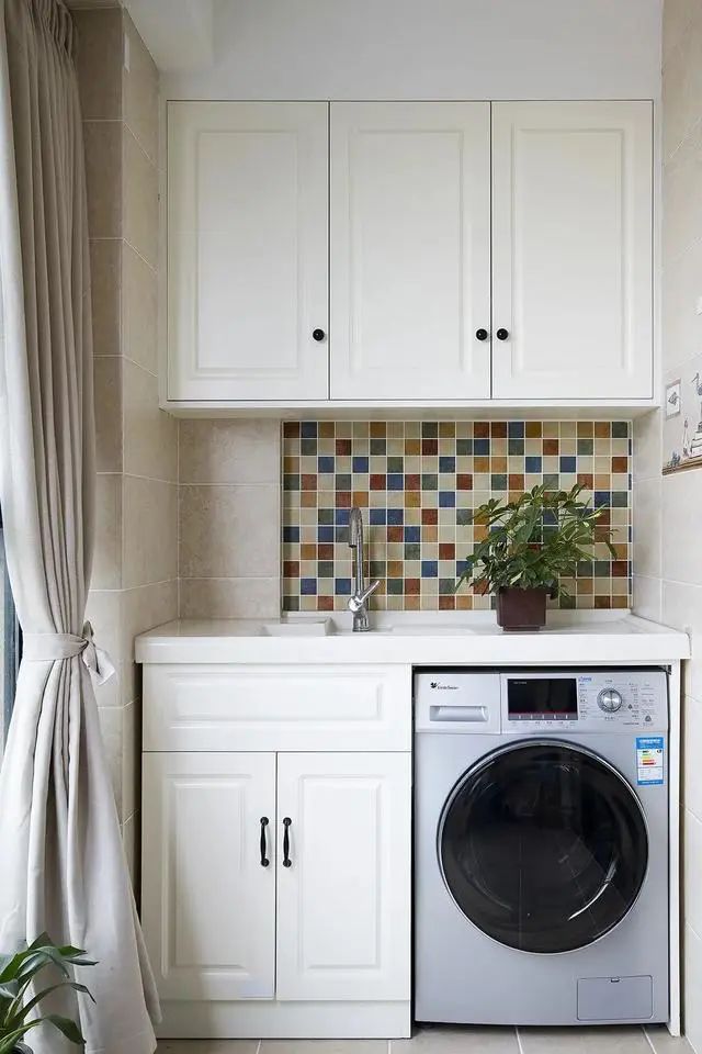 但需要注意的是,要做好这个独立的家务区之前,一定不要忘了搞好排水和防水工程,保障家务区的正常使用。
