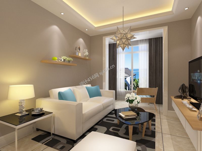 设计理念: 方案设计为现代简约风格。“现代简约风格”以其明亮,简洁的色彩与现代化的材质与工艺相结合,故赢得人们对它的喜爱。 在整体布局上强调空间的整体融合,以简洁舒适为主。客餐厅墙面为淡紫色乳胶漆,温暖舒适。客厅中电视柜选择挂式,与沙发背景墙上的隔板形成呼应,简单方便,极具装饰性又不缺乏储物功能。靠墙位置放置三人乳白色布艺沙发,与墙体颜色形成差别又不矛盾。沙发考阳台一侧放置蓝色木椅和一个两个三角形的茶几。抱枕的蓝色与木椅的蓝色窗帘的蓝色相互呼应,即点缀了整个空间的颜色又给人以舒适温馨的感觉。餐厅放置四人桌椅,椅子也是蓝色的,餐桌上方悬挂着一盏吊灯,餐桌的墙体一面试照片墙,一面悬挂表,另一侧放置一个镜面造型,这种造型是为了增加空间的延展性也使整个空间看起来更加明亮。整体空间吊顶采用石膏板回字形吊顶造型,增强空间点线面的完美结合,使空间很大方,富有节奏韵律。主卧室的设计与整体设计相统一,也以简洁舒适为主。简约的双人床与木质床头柜,再搭配上具有储物功能的衣柜和橱柜墙上还悬挂着别致的吊柜,吊柜里放置这自己喜欢的书籍和植物,整体空间简洁明亮极具现代感。 方案设计为现代简约风格。“现代简约风格”以其明亮,简洁的色彩与现代化的材质与工艺相结合,故赢得人们对它的喜爱。 在整体布局上强调空间的整体融合,以简洁舒适为主。客餐厅墙面为淡紫色乳胶漆,温暖舒适。客厅中电视柜选择挂式,与沙发背景墙上的隔板形成呼应,简单方便,极具装饰性又不缺乏储物功能。靠墙位置放置三人乳白色布艺沙发,与墙体颜色形成差别又不矛盾。沙发考阳台一侧放置蓝色木椅和一个两个三角形的茶几。抱枕的蓝色与木椅的蓝色窗帘的蓝色相互呼应,即点缀了整个空间的颜色又给人以舒适温馨的感觉。餐厅放置四人桌椅,椅子也是蓝色的,餐桌上方悬挂着一盏吊灯,餐桌的墙体一面试照片墙,一面悬挂表,另一侧放置一个镜面造型,这种造型是为了增加空间的延展性也使整个空间看起来更加明亮。整体空间吊顶采用石膏板回字形吊顶造型,增强空间点线面的完美结合,使空间很大方,富有节奏韵律。主卧室的设计与整体设计相统一,也以简洁舒适为主。简约的双人床与木质床头柜,再搭配上具有储物功能的衣柜和橱柜墙上还悬挂着别致的吊柜,吊柜里放置这自己喜欢的书籍和植物,整体空间简洁明亮极具现代感。