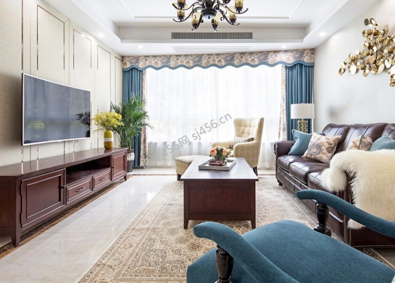 美式风格125平米客厅沙发效果图