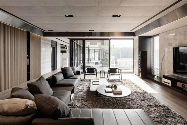 要是觉得黑白灰太清心寡欲,可以搭彩色,选择任何一种颜色沙发,搭配不同颜色墙面、地毯,窗帘,只要颜色不超过三种且比例恰当,就不会难看。