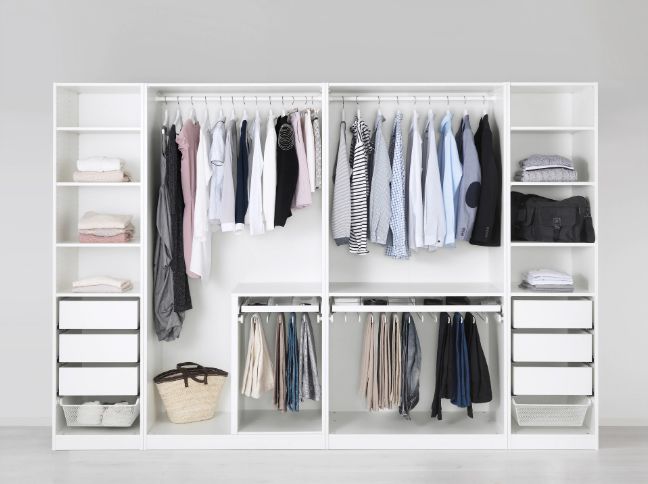 宜家里面就有这种储物收纳布艺格,占用空间小,收纳容量大,入一个挂在衣柜非常好用。不过不要放太重的衣服,像T恤、衬衫、内衣裤比较轻便用这个做收纳非常合适。