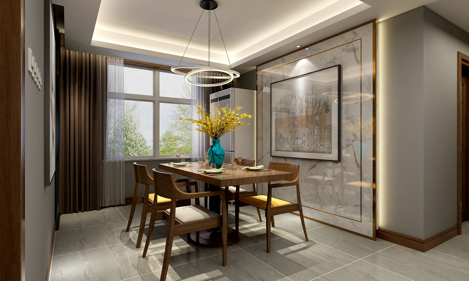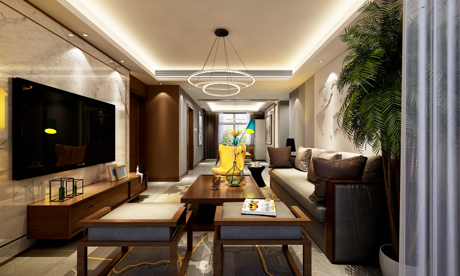 设计说明:客厅餐厅充分的视觉互通性,开放式设计手法让空间视觉更加开阔。设计师以中国人的生活方式为空间布局依托,铸造价值感、文化感,并从的东方人文住宅,让客户记忆深刻。