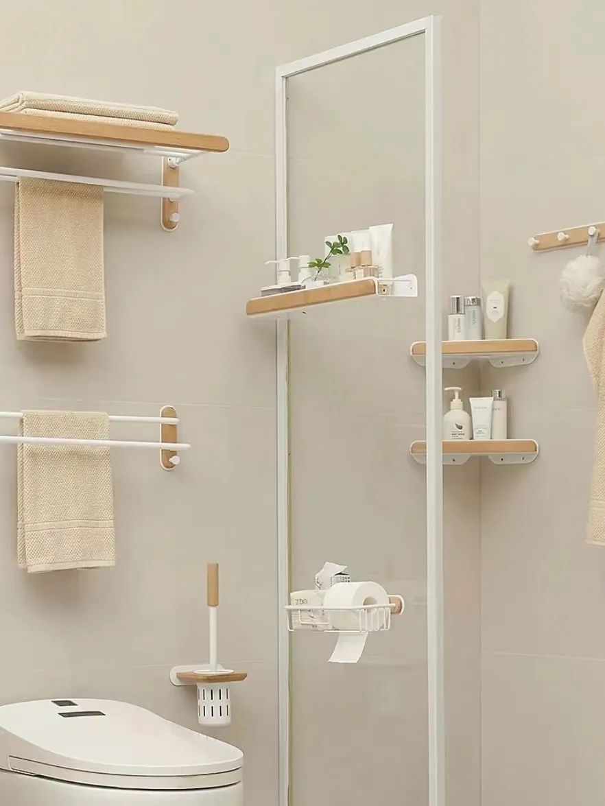 其实收纳除了台盆柜之外,还可以利用窄缝收纳推车和洞洞板,有效利用空间,小户型也能装出幸福感。