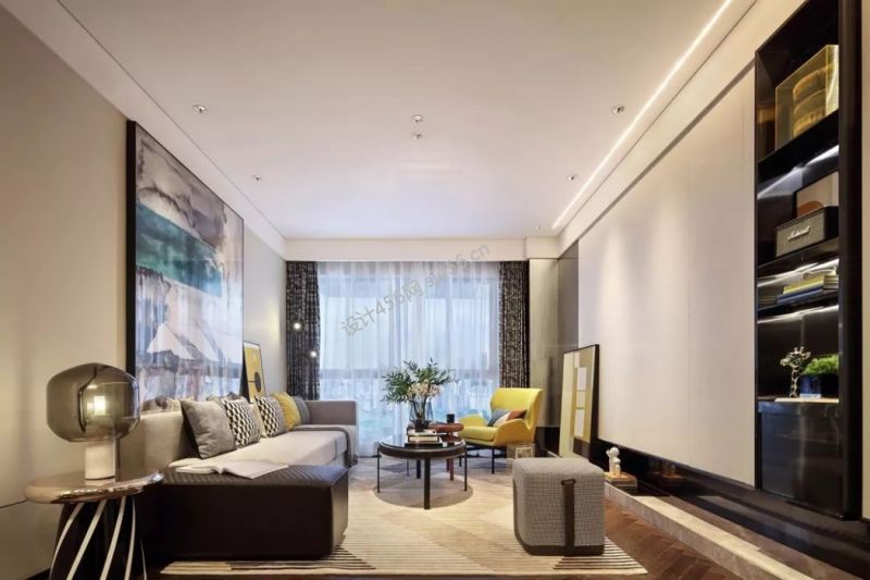 三居119方现代风格客厅吊顶设计图欣赏