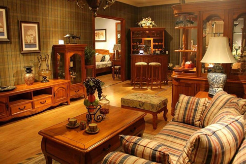 美式田园风格主要以木质家具为主,给人一种浓郁的自然气息,在客厅装修中比较简洁、色彩鲜艳明亮,卧室装饰注重温馨、舒适,给人带来一种自由、舒适、放松的感觉。