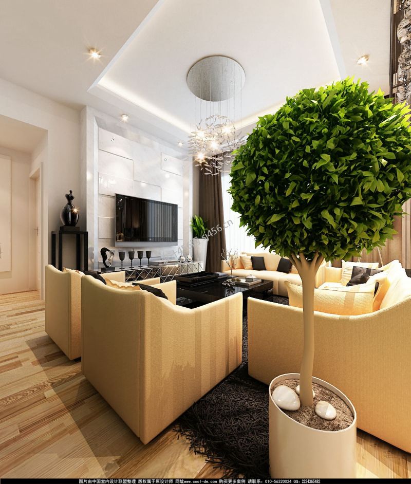 详情康华花语城129平米三居现代客厅装修设计效果图