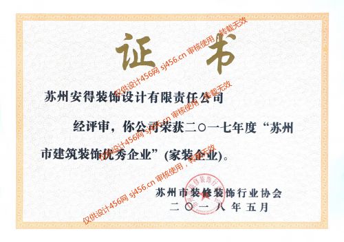 苏州安得装饰设计工程有限公司成立于2001年6月,系建设部所属中装协装饰委员会委员单位、江苏省装饰装修行业协会常务理事单位。安得装饰全面导入ISO14000环境质量管理体系,可独立承接大中型企业办公空间、娱乐餐饮空间的室内外工程装饰设计施工及居家、公寓、别墅的设计装饰施工业务。安得发展十二年,秉承着"以质量为生命,以信誉求发展"、"做精品工程、创名牌企业"的经营理念,使企业规模不断扩大。经中装协认证,目前,安得装饰是全省唯一跨入国际市场,在非洲地区设立海外部的装饰企业。随着业务节节攀升,安得的服务品质及声誉日益提高。安得多次获得国家省、市优质工程奖。 安得创意园地址:苏州市金门路1200号与西环路交汇处 新区分公司地址:中国江苏苏州市干将西路1375号 园区分公司地址:苏州市干将东路47号 养育巷公司地址:苏州市养育巷79号