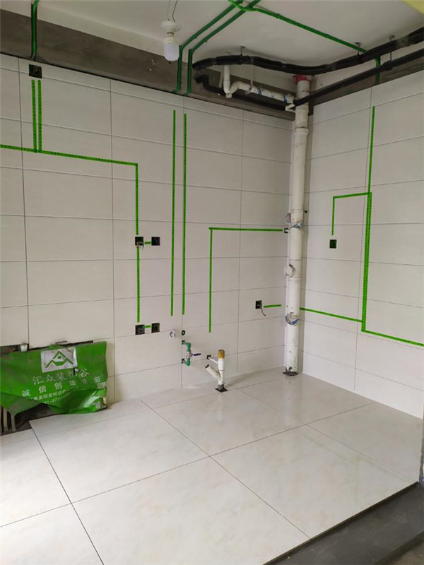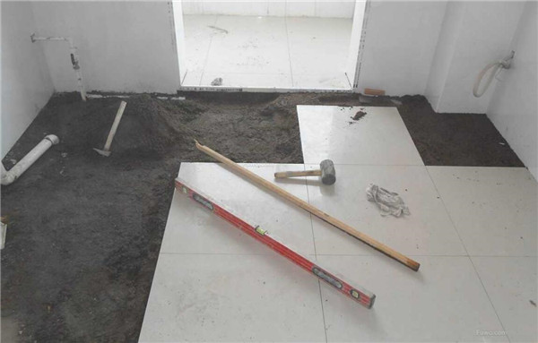 1)清理基层,放线找平。先做防水试验,旧房拆除改造时要先做防水工程,然后要做两次蓄水试验。浴室防水层不低于1.8米,地漏、阴阳角、管道等地方要多做一次防水。厨房和厕所的地面防水层四周与墙体接触处应向上翻起,高出地面不少于250mm。地面面层流水坡向地漏,做到不泛水,不积水。向地漏坡度应不小于3mm。