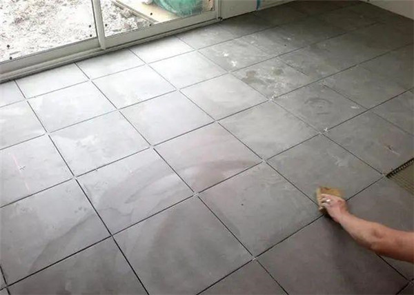 4)铺地砖前整平底灰然后用水泥浆涂抹瓷砖背面1.5-2cm